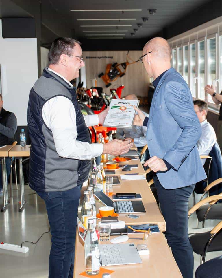 Zum 40-jährigen Jubiläum überreichte AS-Motor eine Ehrenurkunde und kündigte eine gemeinsame Social-Media-Kampagne an. Damit unterstreicht das Unternehmen nicht nur seinen Dank, sondern auch das Vertrauen in die gemeinsame Zukunft.