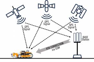 Die Ungenauigkeit des GPS-Signals wird über RTK-Korrekturdaten von fixen Basisstationen auf wenige Zentimeter genau berichtigt.